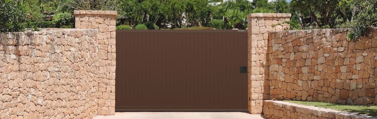 - «Премиум», перекрывающие проемы шириной до 7,5 м и высотой до 3,2 м, их производят с рамой из экструдированного профиля, в качестве заполнения используется панель «сэндвич» с поверхностью «под дерево».